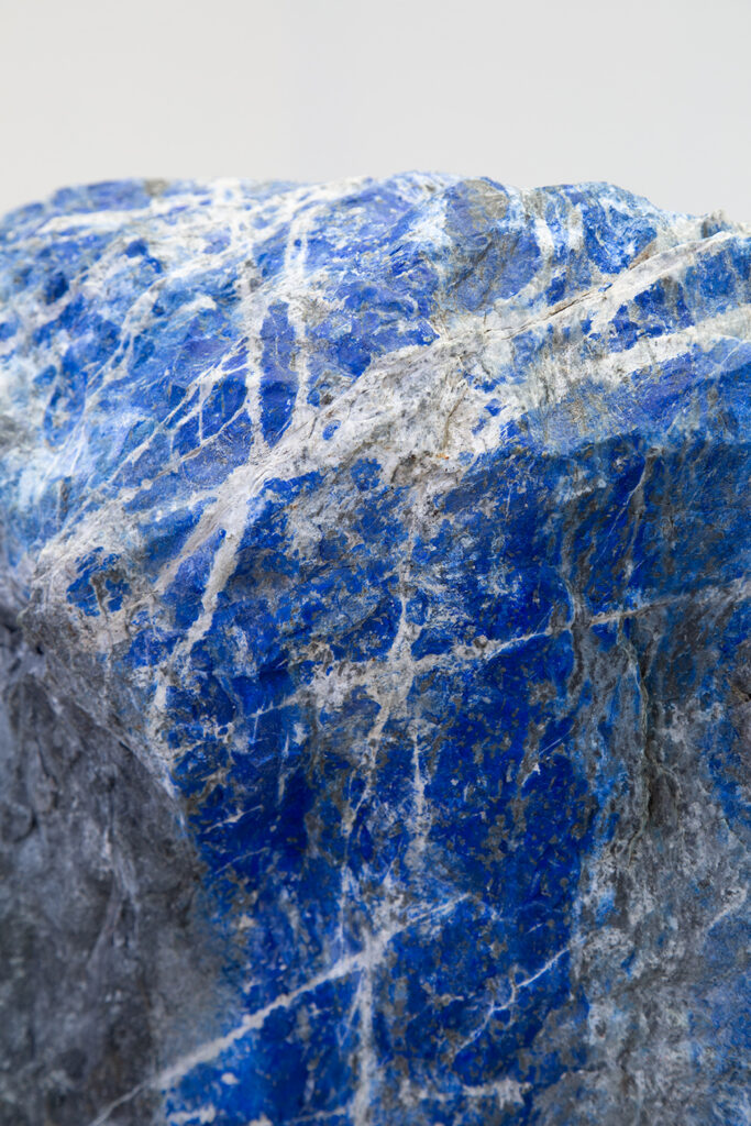 Bij het betreden van deze ruimte word je ondergedompeld in intens ultramarijn. In het midden ligt een imposante steen van bijna twee ton: een brok lapis lazuli. De verf op de muren werd gemaakt met pigment dat uit dezelfde steen afkomstig is. Ook hier lijk je te zweven in de lucht, alsof je een historisch schilderij binnenstapt. De zware steen in het midden trekt je terug naar het aardse. Beide zijn van hetzelfde materiaal – ruw en massief in het ene geval, vermalen en tot lichtblauwe verf verwerkt in het andere. Kwade speelt met die dubbele rol: is dit nu een sculptuur, of juist een schilderij dat je kunt betreden?